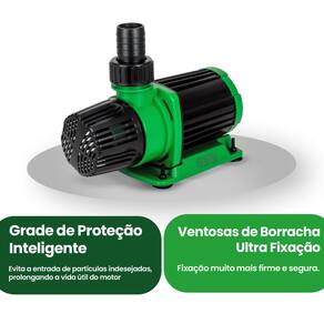 A estrutura da bomba conta com proteção IPX8, o que garante funcionamento submerso seguro em até 1,5 metro de profundidade por períodos prolongados. Sua altura máxima de elevação de 6 metros permite uso em instalações verticais ou com desníveis. A grade de proteção inteligente impede a entrada de partículas maiores, protegendo o motor e aumentando sua durabilidade, enquanto as ventosas de ultra fixação asseguram estabilidade e segurança na instalação.
