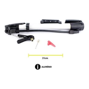 Bomba de ar ideal para bicicleta, boias e bola Itens incluso 1 bico de bola 1 bico de plástico para boias 1 suporte para por na bicicleta com parafusos Dúvidas Frequentes ----------------------------------------------