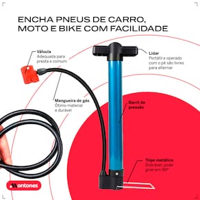 Essa Bomba de Ar é uma ferramenta prática e essencial para suas viagens e passeios! A operação dela é simples e intuitiva! Basta conectar a mangueira à válvula do pneu e bombear a alavanca de inflação para começar o enchimento. Além de sua praticidade, essa bomba de ar é durável e construída para resistir ao uso contínuo. Seu material de alta qualidade garante sua longevidade e desempenho confiável, tornando-a uma escolha inteligente e de excelente custo-benefício.