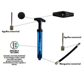 Alguns diferenciais técnicos: A Bomba conta com a tecnologia Double Action facilitando o enchimento e proporcionando agilidade durante o manuseio. Além disso, o produto acompanha duas agulhas e uma mangueira.
