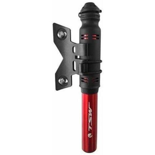 - marca: tsw - cor: vermelha - modelo: manual - material: nylon - válvulas: americana e presta - capacidade máxima: 110 psi - ponteira reversível: schrader e presta - cabo telescópico: maior volume de ar a cada bombeada - possui trava para evitar vazamento no inflar - acompanha um suporte para prender no quadro