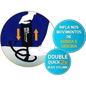 Outro diferencial é o seu volume de ar de 2x700cc, que proporciona enchimento rápido e eficiente. Isso significa menos esforço físico e mais agilidade para encher seus infláveis, garantindo que você aproveite seu tempo da melhor forma, sem desperdícios. A Bomba de Ar Manual KALA também conta com cabo para transporte, facilitando o manuseio e a locomoção do produto.