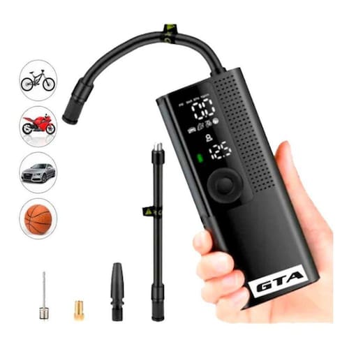 Bomba de ar elétrica smart para Pneu Carro Moto Bicicleta Bola Com um design arrojado, compacto e fácil de usar, a bomba smart GTA apresenta uma ótima solução para inflar Pneus de bicicletas motos carros bolas e demais infláveis. A bomba vem com uma mangueira flexível Embutida com conector para pneus padrão válvula americana e conta com adaptadores para pneus Padrão válvula presta, bolas e piscinas infláveis.A sua bateria de longa duração possui 2000mah De capacidade e é recarregável via usb, conectando-se ao cabo usb que acompanha o produto. A bomba smart GTA possui display digital, pressões pré-definidas, desligamento automático E um botão para liberação de ar, além de possuir um led de trabalho.