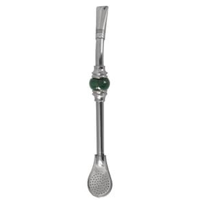 Bomba De Chimarrão 19cm Com Bojo Pera Removível Com Rosca Bomba De Inox Anel De Pedra Ágata Redonda Taumer.