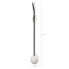 Garantia: 10 anos / Peso: 55g / Cor: Inox / Ref: 712 Dimensões: 4cm (C) x 1cm (L) x 25cm (A) Cuidados: Lavar somente com água corrente, sem materiais abrasivos ou palha de aço, assim a bomba terá longa vida útil. Bomba: Com Rosca. Acompanha: Escovinha.