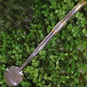 Reunir a família e os amigos para tomar um chimarrão e fazer aquela roda de prosa, contar uns causos e dar boas risadas, momentos que ficam eternizados. Para compor momentos como este é necessários itens de qualidade, e uma bomba para chimarrão elegante e sofisticada, com anel e bocal banhados a ouro 18k. Ideal para compor qualquer cuia e demonstrar seu apreço pela tradição.