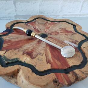 Bomba de Chimarrão Bojo Mil Furos Inox 25cm Pedra Ágata com Rosca Bortonaggio .
