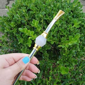 Para deixar seu chimarrão ainda mais bonito e especial, utilize a bomba de chimarrão mil furos lisa 25cm da Bortonaggio. Perfeita para quem gosta de deixar seu mate com uma decoração especial, a bomba de chumarrão é produzida totalmente em aço inox e conta com uma linda pedra ágata na parte superior do seu cabo. Com bojo inovador possuindo uma quantidade muito maior de furos que as convencionais, com espessura de 0,5mm cada, possibilita grande fluxo de água e dispensa uso de filtro. A bomba bojo ainda conta com rosca e você pode desmontá-la para limpá-la de maneira mais prática e eficiente!