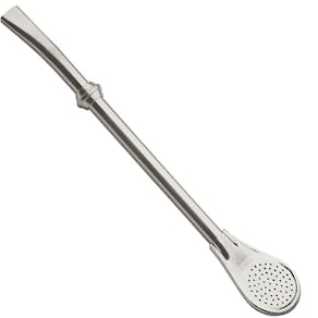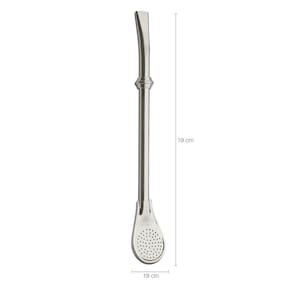 Desfrute seu chimarrão com alta qualidade, sabor e tradição! #Cano com Refrigerador #Bojo em Pera #19cm Garantia: 90 dias / Peso: 30g / Cor: Prata / Ref: 901 Dimensões: 2,5cm (C) x 1cm (L) x 19cm (A) Cuidados: Não lavar com materiais abrasivos; Após o uso lavar com esponja macia e sabão neutro; Guardar o produto seco. Bomba: Sem Rosca Material: - Latão: Liga metálica de cobre e zinco, apresenta brilho intenso. É resistente à oxidação, à salinidade e é dúctil. Bomba medindo 19 cm de altura, possui bocal com um discreto anel e refrigerador em relevo para dar um detalhe artístico à bomba. O bojo é em formato de pera medindo 2,5 cm de largura, ideal para tomar seu mate. Essa bomba pode ser usada para chimarrão, mate ou tererê. Desfrute do seu chimarrão com este belo acessório.