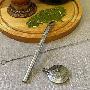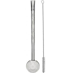 Bomba de Chimarrão Estampada 21cm Bojo Mil Furos Aço Inox com Rosca para Mate.