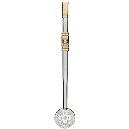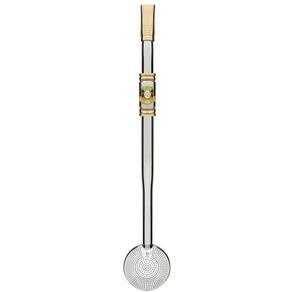 Bomba para Chimarrão Mate Inox 24cm de Chima para Cuia Mil Furos Bortonaggio Brasão com Bojo Rosca e Escovinha.