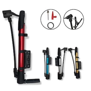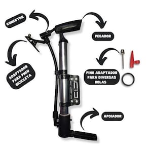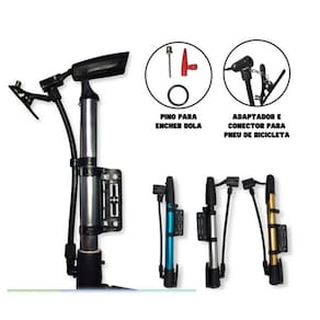 Bomba de encher pneu portatil manual Possui trava de segurança para impedir que o bico escape e o ar vaze. Indicado para encher pneus de bicicleta e bolas. Possui suporte de fixação no quadro. Válvula inteligente com trava de bico Um estágio ao bombear. Pressão máxima: 120psi 8 bar Tipo de bico: schrader. Material: nylon e alumínio. Dimensões: comprimento: aberta - 52 cm fechada - 30 cm diâmetro: 3,5 cm