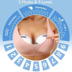 Bomba de mama portátil com 3 modos, 9 níveis de sucção em cada modo.