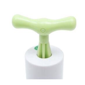 Bomba de sucção manual para saco a vácuo A bomba seladora para sacos à vácuo de alimentos Para utilizar a bomba, basta posicioná-la sobre o saco, bombear e pronto, o ar será retirado do saco de forma extremamente duradoura e eficiente. Após a utilização da mesma os alimentos estarão armazenados à vácuo. Sabe-se que esse tipo de armazenamento permite uma durabilidade muito maior dos alimentos em freezers ou congeladores. Informações: Dimensões Aproximadas: 17x4,5cmMaterial: Plástico Reforçado e borrachaCor: Verde/Branco Pacote contém: 1 unidade