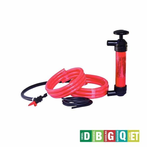 - Em PVC, indicada para transferência de fluídos de baixa viscosidade, e para enchimento de pneus- Bomba de transferência manual multi-uso.- Indicada para: diesel, biodiesel, gasolina, querosene e etanol. - Pode ser utilizada para encher pneus.Especificações técnicas:- Material: PVC- Mangueira: 2 mangueiras de 1/4'' x 1,3m- Bico: prendedor para encher pneus- Medidas: Medidas: 51 mm x C 254 m- Peso: 0,540 Kg- Em PVC, indicada para transferência de fluídos de baixa viscosidade, e para enchimento de pneus- Bomba de transferência manual multi-uso.- Indicada para: diesel, biodiesel, gasolina, querosene e etanol. - Pode ser utilizada para encher pneus.