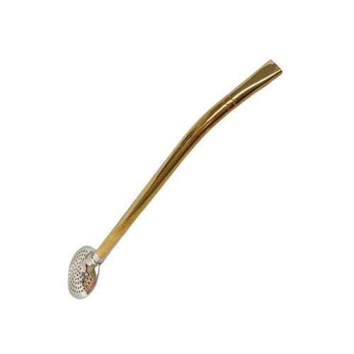 Bomba Dourada de Chimarrão Terere By Fineza Esta é uma linda e tradicional bomba para chimarrão, mate e tereré. Produzida em aço inox e revestimento PVD DOURADO de alta durabilidade. Material:Aço Inox Peso aproximado da embalagem com produto - 250g Revestimento Nitreto de Titânio Dourado Antimicrobiano - Não é pintura. Importante Esse produto não oxida, não enferruja e nem mancha o piso ou bancada com o passar do tempo desde que as recomendações de uso sejam seguidas adequadamente . Produto altamente resistente a umidade.Revestimento antimicrobiano. Contém 01 bomba Dourada de Chimarrão Terere By Fineza Recomendações de uso Use apenas sabão ou detergente e o lado macio da esponja. Outros tipos de produtos, como palha de aço, poderão riscar ou prejudicar o brilho. Enxágue bem cada peça a fim de remover totalmente os resíduos dos produtos de limpeza, que, por serem abrasivos, podem prejudicar o inox. Sempre que possível, use água morna, pois renova o brilho do produto. Após a lavagem, enxugue imediatamente o mesmo, caso contrário, as substâncias químicas da água cloro poderão causar manchas. Na lavagem manual evite atrito entre o produto durante o processo de lavagem e no armazenamento, para mantê-los sem riscos. Não recomendado também, o uso de máquina lava louças.