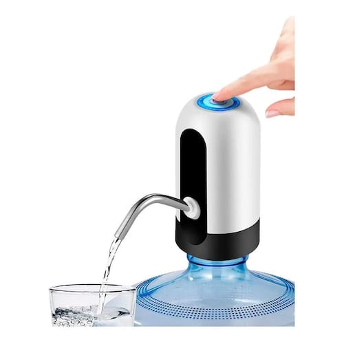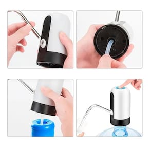 Bomba elétrica automática para galão de água, com carregamento USB Bivolt. Inclui mangueira de inox, mangueira puxadora, cabo USB e manual. Composição em aço inox e plástico.Tipo