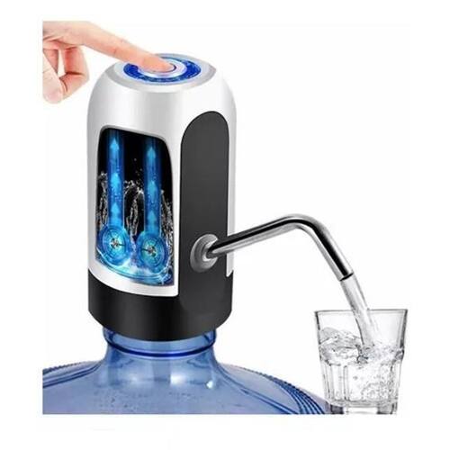 Bomba elétrica portátil com bateria recarregável via USB. Compatível com galões de 5, 10 e 20 litros. Autonomia para aproximadamente 7 galões de 20 litros. Tempo de recarga de 3 horas. Pode ser utilizada durante o carregamento.Compatível com