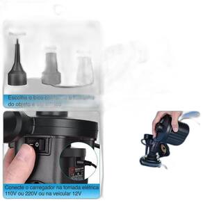 Bomba elétrica rápida para encher e esvaziar colchão Bomba pneumatica - infla e esvasia - 3 bicos adaptadores - 1 fonte 110-240v - 1 adaptador veicular Perfeito para viagens, acampamentos ou uso domestico Esse modelo de bomba elétrica é ideal para facilitar a sua vida. Para inflar e desinflar boias, botes, balões e colchões com alto volume de ar. Possui alto fluxo de ar e acompanha 3 bicos adaptadores diferentes para os mais diversos tipos de infláveis, enche e esvazia apenas trocando o fluxo de ar. É um aparelho multifuncional que pode ser em uma tomada 100-240v ou encaixado na entrada 12v do carro. Marca: Não Informado