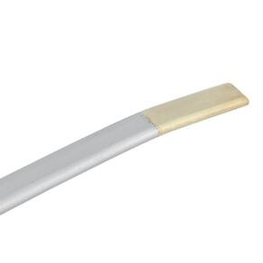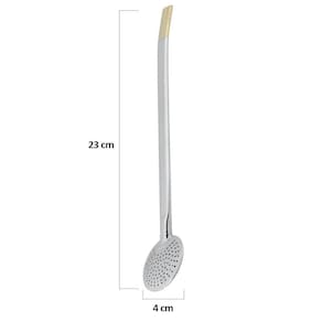 Bomba para chimarrão e tereré Garibaldi fabricada em ferro, possui cano chato, bojo redondo e biqueira com pintura dourada.