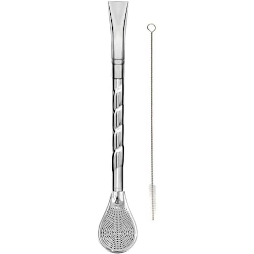 Bomba Inox para Chimarrão Bojo Mil Furos com Rosca Pera 19cm para Mate Tererê.