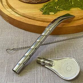 Bomba Inox para Chimarrão Bojo Mil Furos com Rosca Pera 19cm para Mate Tererê.