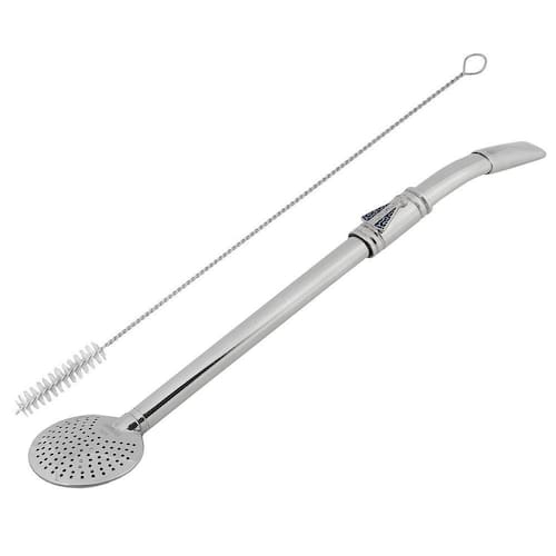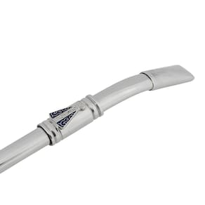 Bomba para chimarrão e tereré Garibaldi fabricada em Aço Inox, possui cano chato, anel com detalhe em boton de Nossa Senhora Aparecida, biqueira e bojo redondo desmontável que possibilita a limpeza interna após o uso. Acompanha escova para limpeza interna