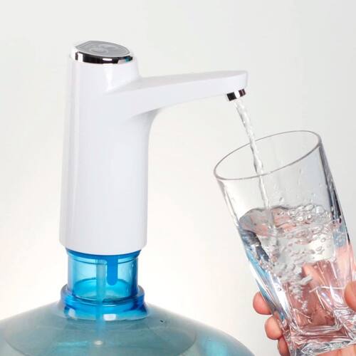 Bomba para galão de água recarregável bivolt USB. Possui 2 modos de utilização: contínuo e 600ml. Compacta e portátil. Opera silenciosamente.Água gelada