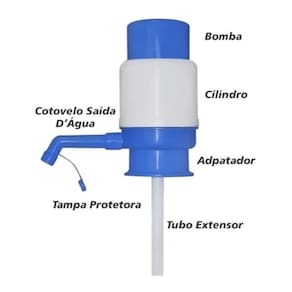 Bomba manual para galão de água mineral de 10 ou 20 litros. Acionamento por botão superior. Bico que não espirra, vedação completa, lavável e fácil instalação. Não necessita de pilhas ou carregadores.Água gelada