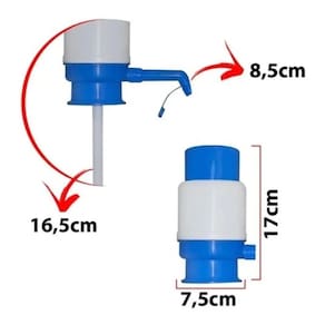 Apenas encaixe-a na boca de um galão de água de 10 ou 20 litros, sem a necessidade de virá-lo. O acionamento da bomba é feito a partir de um botão acionador na parte superior.