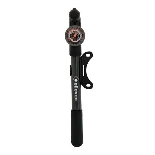 Modelo: Mini com Manômetro Bico: ECV Reversão automática - Presta (Fina) e Schareder (Grossa) Barril: Nylon Extra Ligth Estrutura Externa: Plástico Manômetro: Sim, visor de 1,5 polegadas Possui cabo em "T" para maior ergonomia e sistema de mangueira giratória para facilitar a calibragem Pressão de Calibragem: 120 PSI Comprimento: 27,9cm Acompanha Suporte de Fixação na Bike: Sim Cor: Cinza/Preto Peso Aprox.: 150g Marca: Elleven Ean: 7898718912844