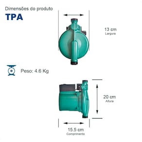 Sistema de Pressurização: Pressurização através de pressostatos e inversores de frequência. Ambiente Principal: Jardim e Varanda Composição: Carcaça de Ferro Fundido GG-20 com tratamento anti-ferrugem. Rotor em Termoplástico. Anel O'ring de vedação da carcaça e juntas em Buna N. Comprimento: 15,5 cm Consumo aproximado de energia: 0,13076 kW/h Diâmetro de Entrada: 1 in Diâmetro de Saída: 1 in Ergonômico: Não Indicado para: Residências, Indústrias, Comércios Itens Inclusos: Acompanha Itens Adicionais (1 Chave, 2 Adaptadores de Rosca e 2 Juntas de Vedação) Largura: 13 cm Manual de Montagem e Instalação: https://product-hub-prd.madeiramadeira.com.br/970845/documents/83888b02-f923-422a-957c-1e1238d71ef225676935783173291050507.pdf Marca: EBARA Material Principal: Ferro Modelo: Bomba Monoestágio Tpa 25-12-200 Monofásico Motor Thebe 270w 127v Necessita Montagem: Não Origem do Produto: Nacional Peso: 4,6 kg Possui Fluxostato: Sim Possui Protetor Térmico: Sim Potência do motor: 0,36 HP Recomendações de Uso, Manutenção e Limpeza: Verifique nosso manual de Manutenção Rolamento Blindado: Sim Temperatura Máxima da Água: 60 ° Tipo de Mecanismo: Não se Aplica Vazão Máxima de Água: 3,4 m³/hora Vazão Mínima de Água: 0,6 m³/hora Voltagem: 110/127V
