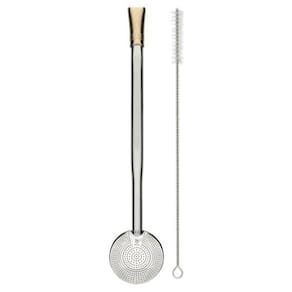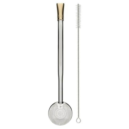 Bomba para Chimarrão 19cm Bojo 800 Furos Inox Bocal Dourado Lisa Bortonaggio.