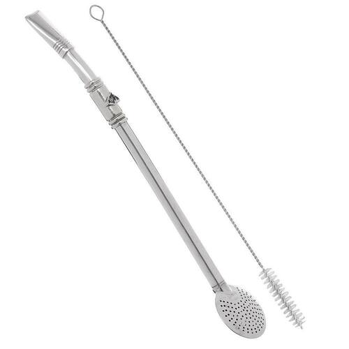 Bomba para chimarrão e tereré Garibaldi fabricada em Aço Inox, possui cano redondo, anel com detalhe em boton de Cabeça de Cavalo, biqueira e bojo modelo redondo desmontável que possibilita a limpeza interna após o uso. Acompanha escova para limpeza interna.