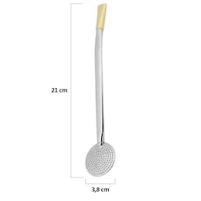 Bomba Promate para chimarrão fabricada em Aço Inox, possui cano chato, bojo redondo e biqueira dourada.