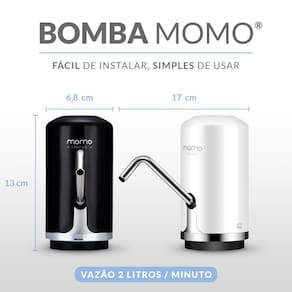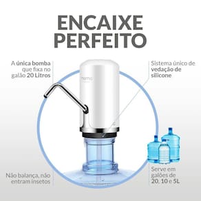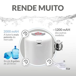 Perguntas Frequentes - Tem à pronta entrega Sim, despacho imediato Todos os pedidos aprovados até as 13:00 são postados no mesmo dia útil. - Como carregar a bomba Pode carregá-la com seu carregador de celular. Ela pode ser usada quando estiver recarregando. - Gela água A bomba não gela água porque não possui um compressor. Mas ela tem uma ótima vazão que enche 1 garrafa de 2 litros em 1 minuto para você por na geladeira.