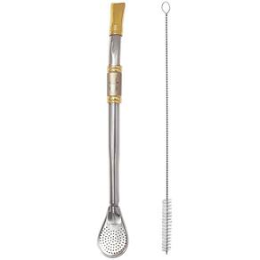 Desfrute seu chimarrão com qualidade, sabor e tradição! #Banhada a Ouro 18 Quilates #Ideal Para Compor Sua Cuia #Luxo, Requinte e Tradição Garantia: 10 Anos / Conteúdo: 1 Bomba para Chimarrão Aço Inox e 1 Escovinha para Higienização / Peso: 75g / Cor: Inox / Ref:DG852CA Dimensões Bomba: 3cm (C) x 1,1cm (L) x 24,5cm (A) Dimensões Escova: 1,5cm (C) x 1,5cm (L) x 25cm (A) Desenhos: Laçador, N. Sra. De Aparecida, Brasão Rio-grandense ou Cavalo Crioulo Cuidados: Não lavar com materiais abrasivos Acompanha: Escovinha para higienização Material: - Ouro: Anéis superiores e bocal da bomba são banhados 2x com ouro 18 quilates; - Aço inox 304: Material de alta resistência, não enferruja, não transfere odor e nem gosto. Cuidados: - Após o uso lavar com esponja macia e sabão neutro, guardar o produto seco. Garantia de 10 Anos: Se lavado somente com água corrente, sem materiais abrasivos ou palha de aço, a bomba terá longa vida útil e 10 anos de garantia contra oxidação. Esta é uma linda bomba para chimarrão e tereré, folhada a ouro 18 quilates! Produzida de forma artesanal com todo um zelo pela tradição, vem adornada com lindas estampas, deixando a você a oportunidade de escolher a que mais combina com você. Feita em aço inox 304, é extremamente resistente à corrosão tendo garantia de até 10 anos. Possui bojo tradicional em formato de pera, este é removível e facilita muito na hora da limpeza. Falando em limpeza, a bomba para chimarrão e tereré vem acompanhada de uma escova especial para higienizações internas deste tipo de acessório, evitando entupimentos indesejados na hora do seu mate. Luxo, requinte, tradição e qualidade estarão presentes em suas rodas de chimarrão com esta bomba.