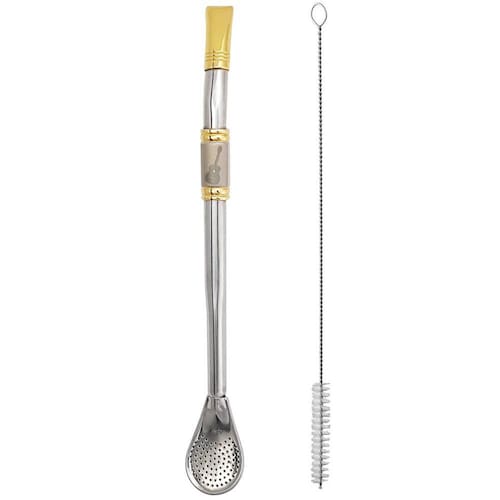 Esta é uma linda bomba para chimarrão e tereré, com banho de ouro 18 quilates! Produzida de forma artesanal com todo o zelo pela tradição, vem adornada com lindas estampas, deixando a você a oportunidade de escolher a que mais combina com você. Feita em aço inox 304, é extremamente resistente à corrosão. Possui bojo em formato de pera, este é removível o que facilita a limpeza. Falando em limpeza, a bomba para chimarrão e tereré vem acompanhada de uma escova especial para higienizações internas deste tipo de acessório, evitando entupimentos indesejados na hora do seu mate. Luxo, requinte, tradição e qualidade estarão presentes em suas rodas de chimarrão com esta bomba.