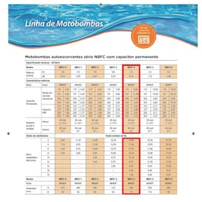 As motobombas para piscinas autoescorvantes com capacitor permanente Nautilus da série NBF foram projetadas para piscinas residenciais ou comerciais. Fabricada em plástico de engenharia ABS, são resistentes, silenciosas e à prova de corrosão. Os motores elétricos acoplados são monofásicos, com o novo motor elétrico da WEG com capacitor permanente que possui protetor térmico incorporado que garante maior segurança e menos riscos de queima, pois tem opções em diversas instalações evitando o risco de queima do motor pela diferença de voltagem. A nova linha de motores elétricos WEG com capacitor permanente foi customizada para as bombas produzidas pela Nautilus nos modelos NBF e HM para melhor atender a essas potências específicas. Esse é um produto exclusivo Nautilus! No mercado é possível encontrar produtos similares visualmente, mas apenas a linha da Nautilus desenvolveu essa customização com a WEG.
