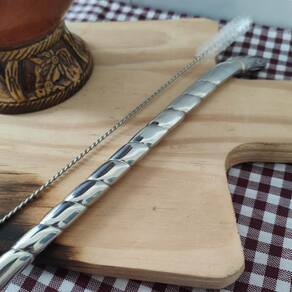Garantia: 90 Dias / Peso: 55g / Cor predominante: Inox / Ref: ART252MF Dimensões: 4cm (C) x 1cm (L) x 24cm (A); Comprimento do bocal: 1,5cm; Diâmetro do bojo: 4cm; Dimensões da escovinha: 1cm (L) x 25,5cm (A); Materiais: aço inox 304 (bomba), metal e nylon (escovinha); Bomba com bojo rosca, removível para melhor higienizar; Conteúdo: 1 bomba de chimarrão e 1 escovinha de higienização.