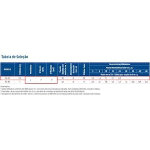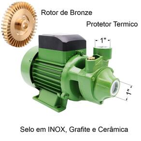 Detalhes Técnicos do Produto - Caracol de ferro fundido - Rotor de bronze - Selo mecânico constituído de aço inox AISI-304, buna N, grafite e cerâmica - Bocal de sucção e recalque de 1 com rosca BSP - Vazão de 0,3 a 1,6 m/h - Altura manométrica total de 3 a 24 m.c.a. - Motor elétrico monofásico, com proteção IP-44, 2 polos, 60 Hz e com protetor térmico - Tensão: 220V Ean: 7909445255262