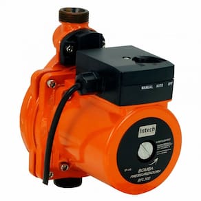 Bomba Pressurizadora 300 Watts 220 Volts - BFL300 - INTECH MACHINE Descrição: - A Bomba Pressurizadora BFL300 da Intech Machine é ideal para pressurização de casas, apartamentos, sistemas de ar condicionado, sistemas de aquecimento central a gás, pressurização de aquecedores solares e circulação de água. Ela proporciona um banho muito mais confortável e agradável através de um jato com maior pressão, sendo que pressuriza até 4 pontos de sua casa. A BFL300 é compacta e silenciosa. Seu fluxos tato incorporado lida e desliga a bomba automaticamente quando a torneira, chuveiro ou outro ponto similar da casa é aberto ou fechado, melhorando o aproveitamento de água e economizando energia. A bomba centrífuga BFL300 de mancal molhado com carcaça hidráulica em ferro fundido GG20, com revestimento de proteção anticorrosão de pintura com esmalte cerâmico. Aplicação: - Ideal para pressurização de casas, apartamentos, sistemas de ar condicionado, sistemas de aquecimento central a gás, pressurização de aquecedores solares e circulação de água. Características: - Pressão máxima: 18 m.c.a - Vazão máxima: 4.500 L/h - Capacidade de pressurização de 4 pontos simultâneos - Pode ser usada no modo manual ou automático - Compacta e silenciosa - Fluxos tato incorporado, que liga e desliga conforme o uso - Acompanha 2 adaptadores de 1 para ¾’’ - Acompanha cabo elétrico e plugue - Alimentação: Eletricidade - Recalque de sucção: 1 - Fluxos tato: Interno - Frequência: 60 Hz - Pontos de saída de água: 4 pontos - Temperatura máxima de água: 60 °C - Grau de insulação: Tipo H - Peso líquido do produto: 5,2 kg - Dimensões (L x A x P): 22 x 19,5 14 cm * Imagens meramente ilustrativas