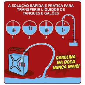 Especificações Técnicas:Ferramenta fabricada em PVC e nylon, materiais não condutores, ideal para transferir liquidos e combustíveis em geral.Possui vazão de até 12 litros por minito.Seu funcionamento é simples:1 Coloque a "bomba rápida" no recipiente que contém o liquido que deseja transferir.2 Faça um movimento de "vai-e-vem" para bombear.3 O liquido começará a ser transferido.