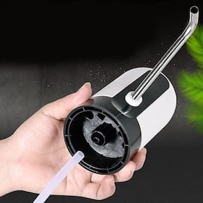 Bomba elétrica recarregável para galões de água de 5, 10 e 20 litros. Carregamento via cabo USB. Rotação de 360 graus. Compacta e portátil.