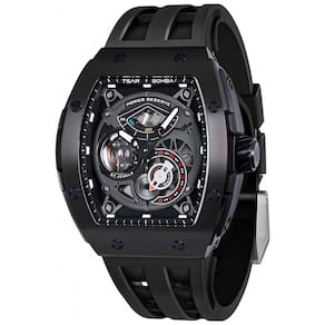 Relógio Masculino Automático Mecânico a Prova dÁgua 50M com Pulseira de Silicone, TSAR BOMBA 8208NEW, Preto
