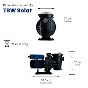 Mola em inox 304 e elastômero (borracha) em Buna N. Acompanha bóia elétrica: Não Acompanha válvula de retenção: Não Altura: 33 cm Altura manométrica total: 35 mca Ambiente Principal: Jardim e Varanda Composição: Bombeador inteiro em termoplástico. Ponta do eixo em aço inox (evita corrosão prematura). Anéis O'ring de vedação em Buna N. Selo mecânico: Faces em grafite e silício. Mola em inox 304 e elastômero (borracha) em Buna N. Comprimento: 52,5 cm Conexão de entrada/saída: Sucção 50mm x Recalque 50mm Ergonômico: Não Funcionamento: Energia Solar Itens Inclusos: Incluso peças adicionais para auxiliar na instalação Largura: 24 cm Manual de Montagem e Instalação: https://product-hub-prd.madeiramadeira.com.br/958309/documents/11a7989b-b6db-4e72-93ce-99024a9a54ba2449549578317287630305574.pdf Material Principal: Termoplástico Modelo: BOMBA SOLAR ÉCAROS PISCINA TSW CE 500 W MOTOR THEBE IP44 48V Necessita Montagem: Não Origem do Produto: Nacional Peso: 8,8 kg Profundidade de sucção: 5 m Recomendações de Uso, Manutenção e Limpeza: Verifique nosso manual de Manutenção Tipo de bomba de água: Centrífuga Vazão máxima: 2.300 L/h