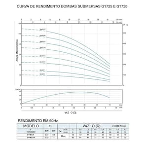 Aplicações em poço artesiano para bombear água limpa e isenta de sólidos para pequenas irrigações, abastecimento residencial e reservatórios.DADOS TÉCNICOS:
