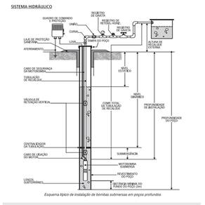 - Potência do motor: 1500W/ 2CV - Voltagem: 220V - Altura Manométrica: 101 mca - Vazão máxima: 5 L/h - Recalque de sucção: 1 - Cabo elétrico: 2 M - Cabo Plugue : 1 ponto - Profundidade de Instalação: 3 Metros