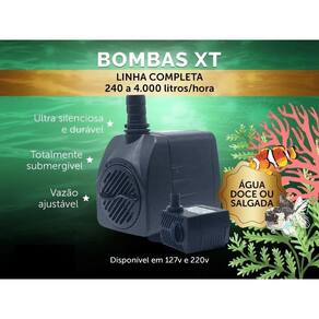Bomba Submersa XT Ocean tech 3000 lt/h. Para Aquários, Bebedouros, Climatizadores, Fontes e muito mais. A Bomba Submersa Ocean Tech Modelo XT-3000 foi projetada para funcionar como bomba de circulação. Tendo aplicação em Fontes, Aquaterrários, Hidroponia, Climatizadores e muito mais. Podendo ser Utilizado em água doce ou salgada. Silenciosa e eficaz, esta moto bomba produz movimentação de água, 3000 litros/hora, com baixo consumo de energia elétrica, apenas 55 watts. Possui 4 ventosas anti-ruído para uma excelente fixação. Possui regulador de vazão da água. Como em todas as bombas, os componentes elétricos são totalmente imersos em resina epóxi tornando-as seguras contra choque elétrico mesmo trabalhando continuamente submersas. Dimensões da bomba: 108 x 94 x 66 milímetro. 10,8x9,4x6,6cm Litragem: 3000 litros/hora. Cabo normatizado inmetro: 1,14metros. Cosumo baixíssimo: 55 watts. Coluna máxima para construção de fontes coluna de água : 230cm. Ultra silenciosa. Marca: Não Informado