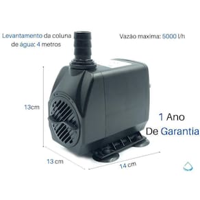 CARACTERISTICA - Altura máxima: 4 metros -vazão: 5000 litros hora - consumo de energia: 100W - voltagem: 110v - Garantia 1 Ano Ean: 6955974107238